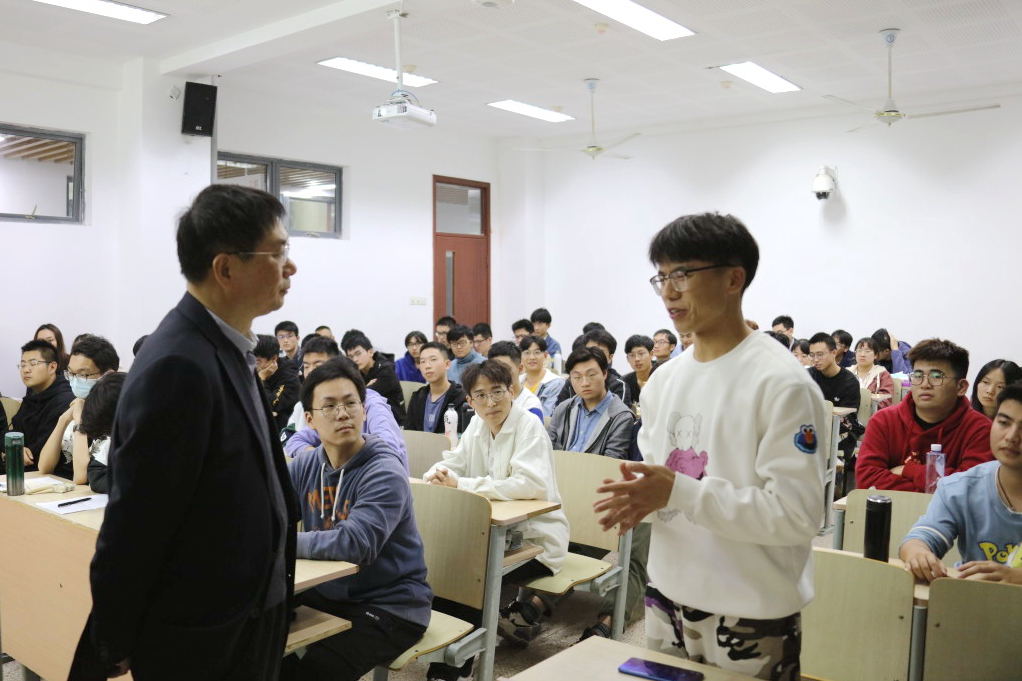课程开始,田备老师首先引用电工电子学知识点提出“电路内阻等于外阻的时候,电路功率最大”以及“当内阻为0的时候电路输出效率最高,此时电源为理想电源”,正如抗疫过程中,只有上下一心、政令统一方能取胜。接下来他结合公司、附属医院医生以及员工志愿者在抗疫过程中的真实故事,向同学们生动地展现了生命至上、举国同心、舍生忘死、尊重科学、命运与共的伟大抗疫精神。