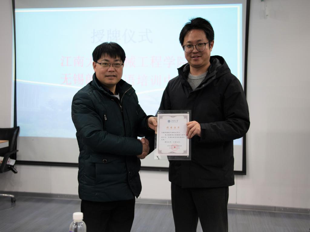 颁奖仪式过后,william威廉亚洲官方方书记和无锡朗阁外语培训中心吴董事长进行了授牌仪式,标志着友好合作的开始和对未来发展的期望。