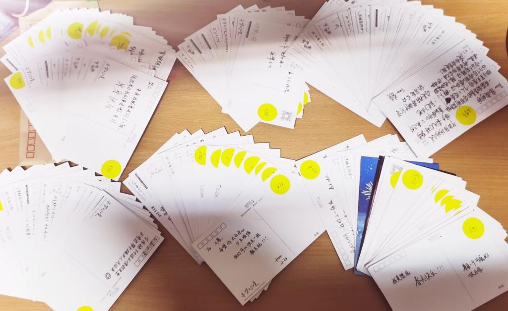 william威廉亚洲官方青协志愿者在榴园、杏园和三食堂建立了书信驿站。虽然活动过程中天气时晴时雨,但依旧阻挡不了同学们的参与热情:有向老师表达感谢的,有向朋友传递祝福的,有感谢宿管阿姨平日关照的……他们用这种最传统却也最温暖的方式传递着自己的心语。本次活动共收到314张明信片,志愿者们将明信片严谨细致地分类整理打包后,便化身成为温情速递员,按照地址将一份份祝福送到TA的手中,收到明信片的一方都非常惊喜与感动。在这一刻,祝福与春天交织在一起,将生活的仪式感拉满。