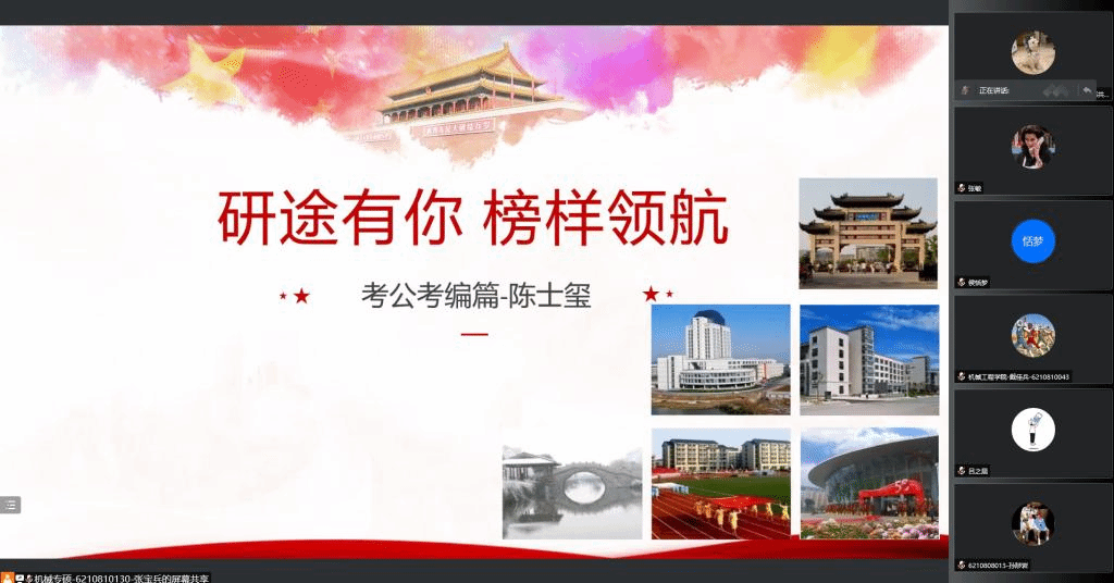 已成功保博至本校的王剑宇从明确目标、做好规划、付出行动三个方面分享了他的申博经验。陈士玺则向大家详细解读了考公考编的政策及报考资格,分享了自己的考公经历,提醒同学们不要盲目跟风,要提前做好各项准备。