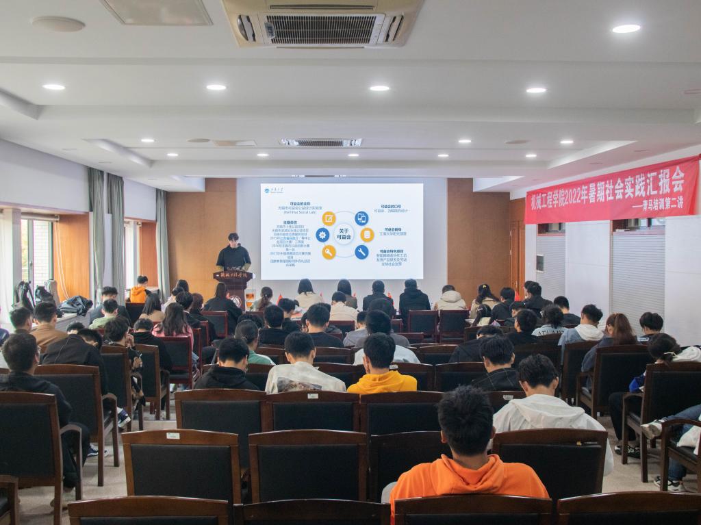 本次实践汇报会暨青马培训会邀请了“鼋梦”乡村振兴实践团、“械”逅发展成就观察团、“械”逅晓丰社会实践团、“助残 益路同行”乡村振兴实践团、小红蜻蜓实践团、红色记忆党史学习团进行汇报与分享。他们有的赴城乡观发展变化,实地感悟时代脉搏:“鼋梦”乡村振兴实践团来到大别山革命老区,参观红色基地与产业园区,走访乡村群众听社情民意。在调研中,他们感受到了乡村振兴战略给村民生活带来的显著改变。“械”逅发展成就观察团走进城市,通过企业探访、群众调研、城市发展调研,与民营制造业负责人进行交流,进入车间感受现代制造业工作环境,走进杭州博物馆、城市大脑等了解智慧城市的发展,进行民情社情调研,更好了解民众的反馈与愿景。他们有的进基层扶弱势群体,用爱心弘公益精神:“械”逅晓丰社会实践团走进无锡乡镇社区,以“留守儿童”为主要服务对象,开展为期两周的“五彩童年 红色记忆”夏令营活动,帮助社区留守儿童群体丰富假期生活,积极传播红色文化。“助残 益路同行”乡村振兴实践团在经开区太湖街道为精神障碍和智力障碍残疾人群体开展一系列的助残服务。团队走进残友家中访谈交流慰问,进公益组织参与友善产品协作,赴社会宣传推广公益精神。他们有的到红色基地听红色故事,缅先烈悟先进思想:小红蜻蜓实践团队围绕“喜迎二十大,永远跟党走,奋进新征程”的主题,通过参观红色基地、观看红色电影等加深“四史”的学习。红色记忆党史学习团队通过线上线下相结合的方式,进行党史集体学习,并赴家乡或周边地区进行了红色基地的走访。