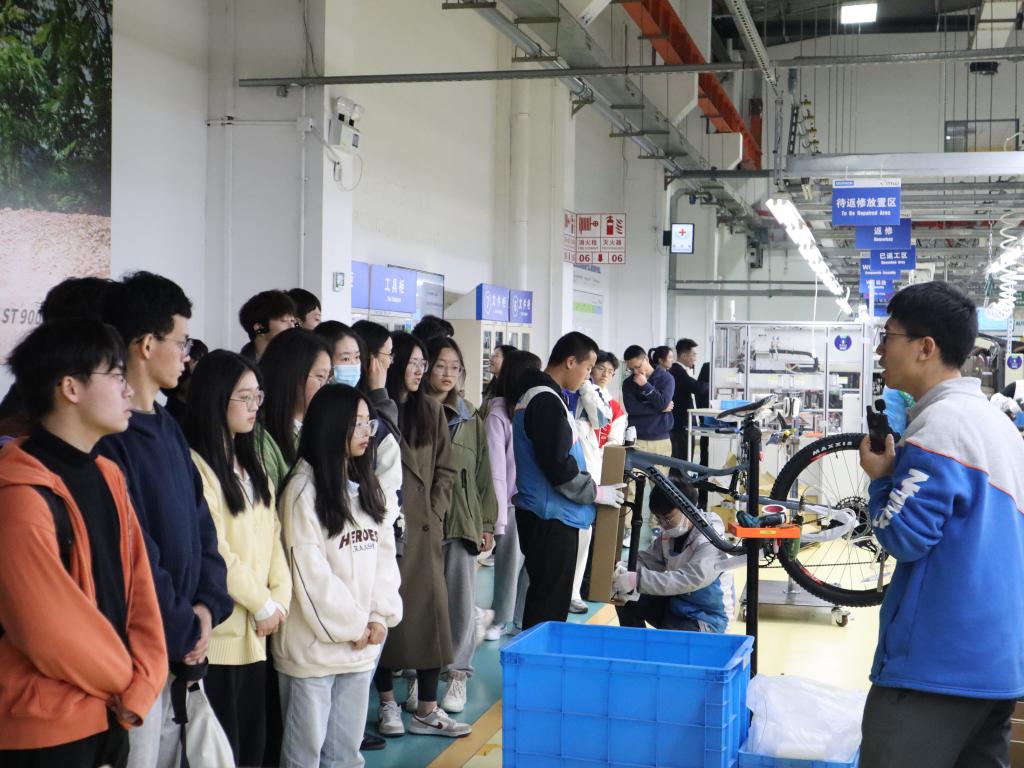 签约后,中国生产校企合作负责人吕云飞作专题报告,介绍了迪卡侬公司历史发展、产业布局、创新发展方向及未来战略等;2019届员工、迪卡侬供应链主管曲星茹结合工作经历,讲述自己从卓工实习生成长为供应链主管的故事。交流环节,在座同学从职业规划、能力培养和未来发展等方面纷纷提问,双方进行了热烈的讨论、互动。座谈会后,师生一行前往公司研发中心和生产工厂实地参观全产业链生产流程,深入了解公司产业发展和产品研发试验过程。