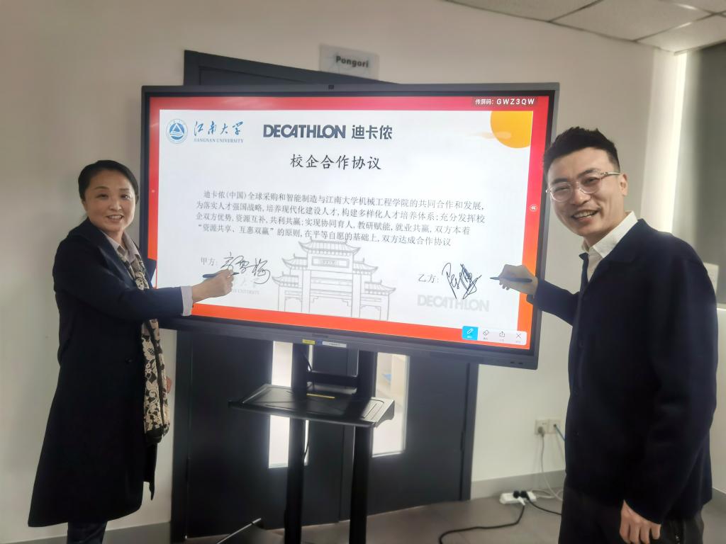 活动伊始,由双方代表致辞。迪卡侬中国金属制成采购总监兼苏州办公室总经理赵世坤对机械公司师生的到来表示热烈欢迎;2010届员工、中国生产部硬件类采购总监陈博表示,自双方开启合作以来,充分发挥了校企各自的优势,实现了资源互补、互利共赢、协同育人,希望以后将进一步加强与公司的合作,为企业吸纳更多以技术为背景的复合型人才。高雪梅代表机械公司对迪卡侬公司的热情接待表示感谢,并介绍了近年来机械公司在团队建设、人才培养等方面的发展概况,回顾了与迪卡侬公司在“卓工计划”实施、体育精神培育等多方面的成功合作历程,她指出,今后校企双方在大健康事业发展等方面可拓展更多的项目合作,互相支持、合作共赢。致辞结束后,双方再次续签了校企全面合作协议,谋求在公司新的一届任期,协商开展更多、长远的合作。