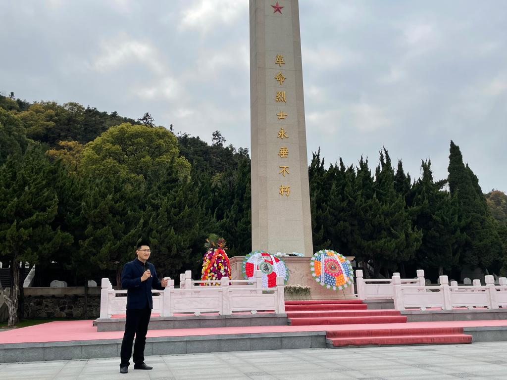 公司师生代表来到陵园广场,在陈宗昱的主持下举行了庄重肃穆的悼念仪式。师生们怀着崇高的敬意向烈士敬献花圈,在纪念碑前默哀,表达对先烈的敬意与深切哀悼。冯亚东致悼词,他勉励机械学子牢记革命历史,不忘先烈遗志,传承红色基因,厚植家国情怀。陈宗昱带领全体党员庄重宣誓,向革命烈士纪念碑三鞠躬,绕墓地一周,献上鲜花以表哀思。