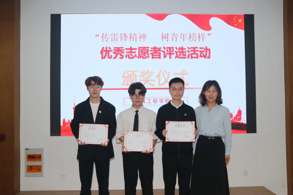 经评委老师的现场打分,崔辰晖、曲茂东、徐一轩、吕昂烨、季成睿、孟卓、盛莹、殷浩、刘智贺、黄俊杰十位同学荣获优秀志愿者,辅导员潘智琦和冯亚东为他们颁发“十佳志愿者”荣誉证书。崔辰晖、曲茂东、徐一轩同学获“模范志愿者”荣誉称号,孟召双为他们颁发“模范志愿者”荣誉证书。