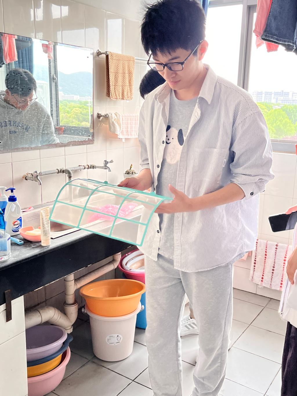 16-304寝室的马雨欣表示,志愿同学进门很有礼貌,清洗得也很干净,非常感谢他们的付出,我们寝室同学也会以他们为榜样,积极参与校内外的志愿服务,奉献青春。2021级本科生志愿者孙崇皓感慨到,能够通过自己的行动帮助到周围的同学们,挥洒汗水的同时也收获到了快乐,本次志愿活动虽然结束了,但是志愿精神仍在并会继续发扬下去。
