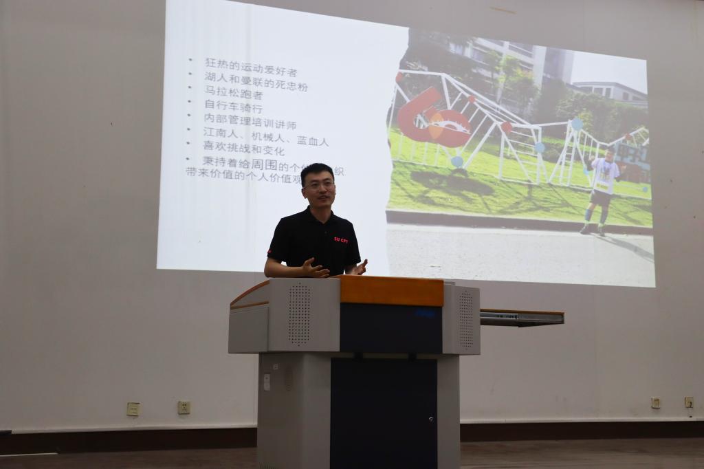 钱善华为本次活动作总结。他感谢员工精彩分享的同时,引导员工思考“大学四年应该怎样度过”,鼓励大家先好好学习各门课程,打好扎实基础,再去寻找自己的追求,让老员工活变得有意义,成就更好的自己。