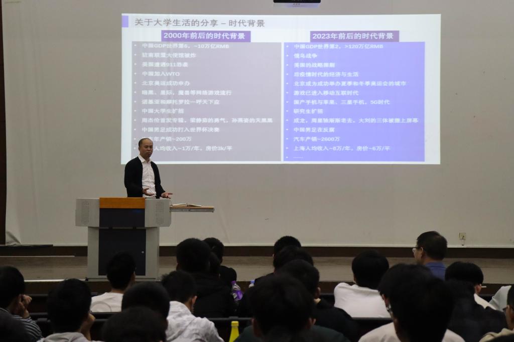陈博从“我和大学”、“我和工作”以及“更好的自己”三个方面分享了他的大学经历以及从事机械行业的心得,并通过讲述他的毕业设计、考研与就业的选择,与同学们交流了专业与职业的联系,并引导同学们珍惜当下、清晰选择、提升能力、保持健康,做有“韧性”的老员工。