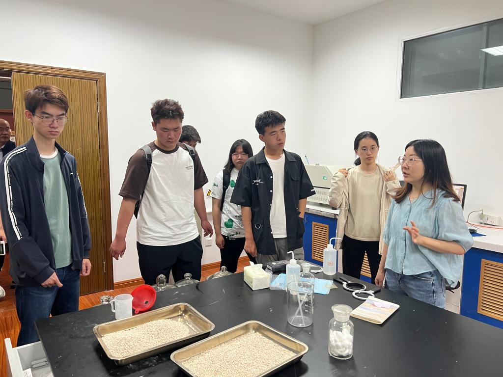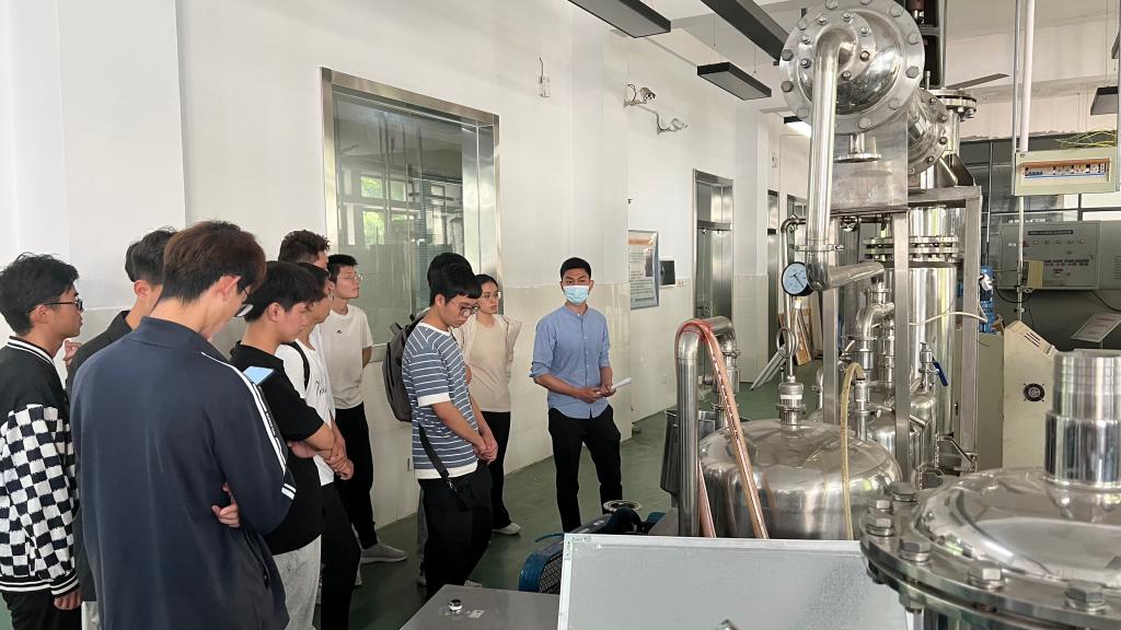 作为参观的第二站,包装材料实验室中卢莉璟老师向员工介绍了检测包装工艺的各类设备及包装专业的相关研究内容;食品加工单元内,夏晓露老师为员工讲解了应用于食品加工过程的诸多设备,及设备工作的原理、研发中的技术难点,例如自动包饺子机器人等。