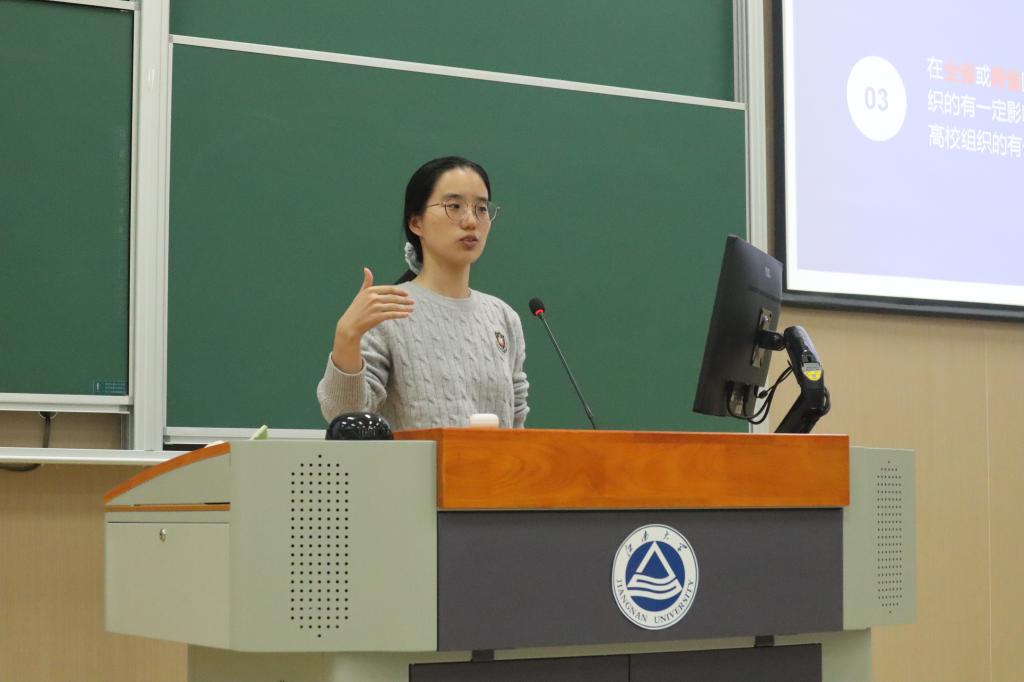 在“实践归来话成长”分享会上,吕昂烨以自己作为省级社会实践团队负责人前往浙江开展社会实践的经历引入,从“什么是社会实践、为什么要做社会实践、如何做好社会实践”三方面向同学们讲述了如何做好一个社会实践。他引用习近平总书记的话“希望广大青年用脚步丈量祖国大地,用眼睛发现中国精神,用耳朵倾听人民呼声,用内心感应时代脉搏,把对祖国血浓于水、与人民同呼吸共命运的情感贯穿学业全过程、融汇在事业追求中”来勉励同学们积极投身社会实践。