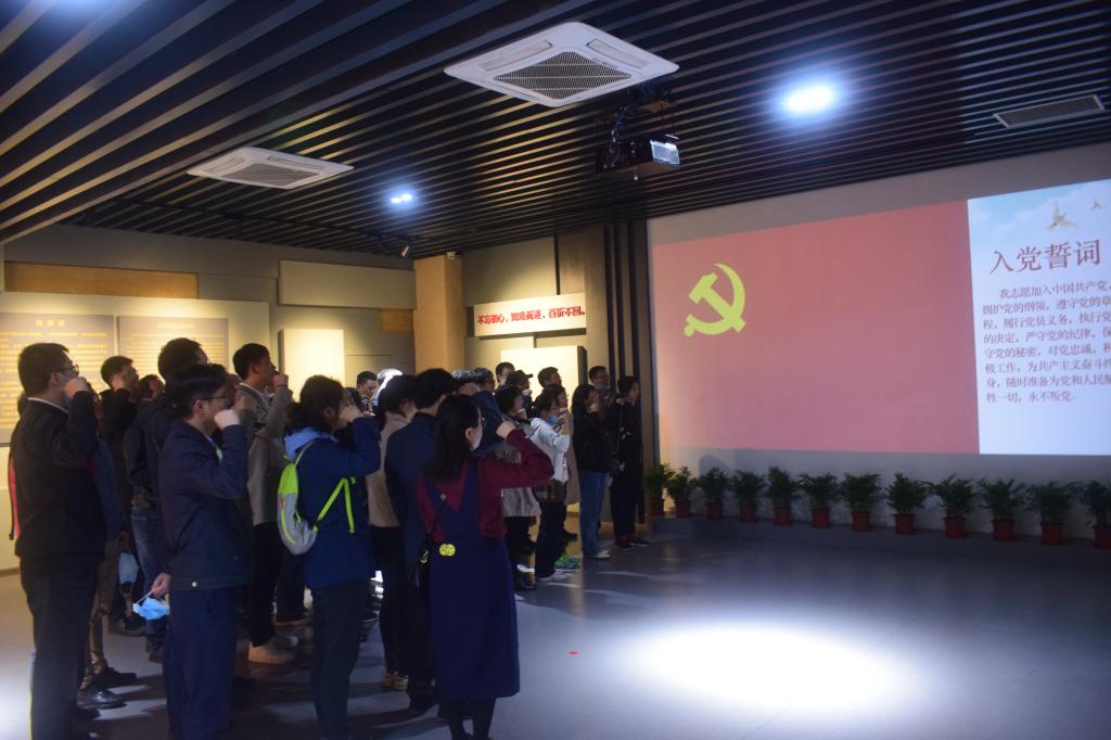 上午在在宜兴校区,工作人员介绍了校区整体规划、建筑功能等情况,老师们实地参观了即将完工的一号科研楼,与工作人员进行交流,了解了新校区的建设进展,并在一号科研楼前合影留念。下午在新四军和苏南抗日根据地纪念馆学习,这里记载了中国共产党以太华山区为中心的苏南抗日斗争和新四军根据地建设的重要历史。一间间展室、一件件陈列品,一张张照片……党员教师认真观看,对如今来之不易的幸福生活感慨万千。最后,还举行了重温入党誓词活动,面对鲜红的党旗,党员同志们举起右手,由高雪梅领誓,提醒每个党员牢记入党时的庄严承诺,坚持为人民服务的根本宗旨并贯彻始终。活动结束后,老师们表示今天的党日活动非常有意义,既学习了党史,更加深刻地认识到我们党在历史长河中的壮丽篇章,又参观了新校区,看到了公司的发展蓝图,大家要学史明理、学史增信、学史崇德、学史力行,提升岗位工作能力,助力公司公司发展。