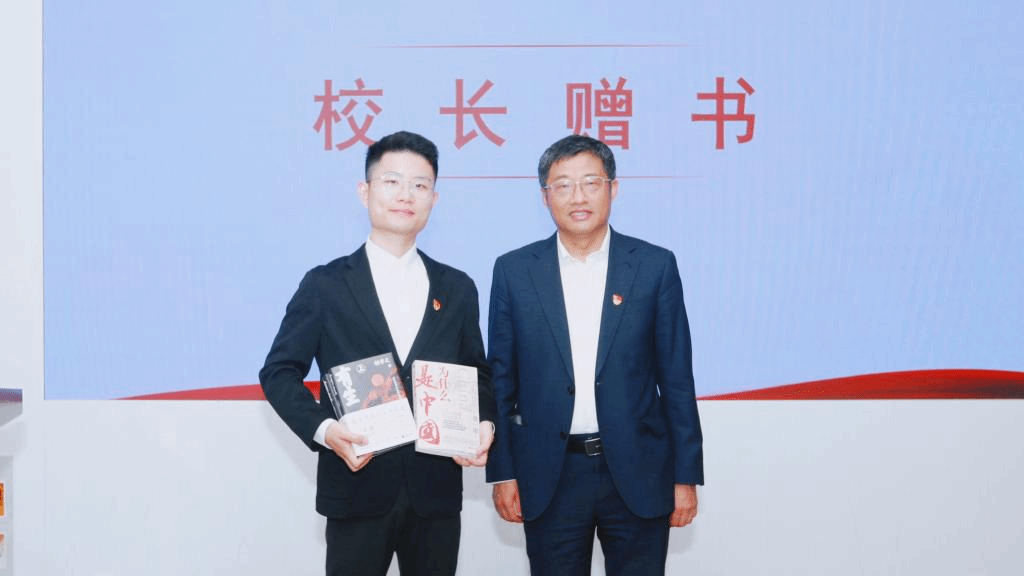 理论学习结束后,进行了董事长赠书。陈卫向研究生党支部赠送了亲笔寄语的《为什么是中国》《有生》等书籍,希望机械学子能够矢志不渝,笃行不怠,在制造强国、科技强国的道路上作出新时代青年的积极贡献。
