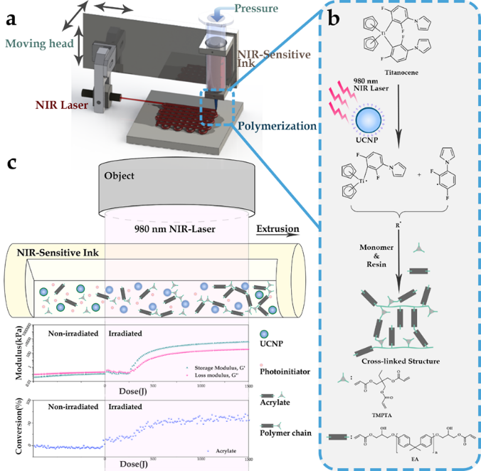 近日,公司刘禹教授团队在3D打印技术取得进展。刘禹教授团队与化工公司刘仁教授团队合作,创新近红外辅助3D墨水直写增材制造技术,实现多色彩材料、跨尺度(μm - mm)部件3D打印,打破了传统增材制造方法的材料与制造精度局限性,有望加速3D打印技术在柔性传感、软体机器人与生物医疗领域的应用。相关成果在顶级期刊《自然·通讯》发表题目为“3D printing of multi-scalable structures via high penetration near-infrared photopolymerization. Nat Commun 11, 3462 (2020). https://doi.org/10.1038/s41467-020-17251-z” 的科研论文。机械公司作为共同通讯单位,刘禹教授与刘仁教授为通讯作者,化工公司博士生朱俊哲为第一作者,公司硕士生张强为第二作者。该研究得到了国家自然科学基金、江苏省食品先进制造装备与技术重点实验室等大力支持。