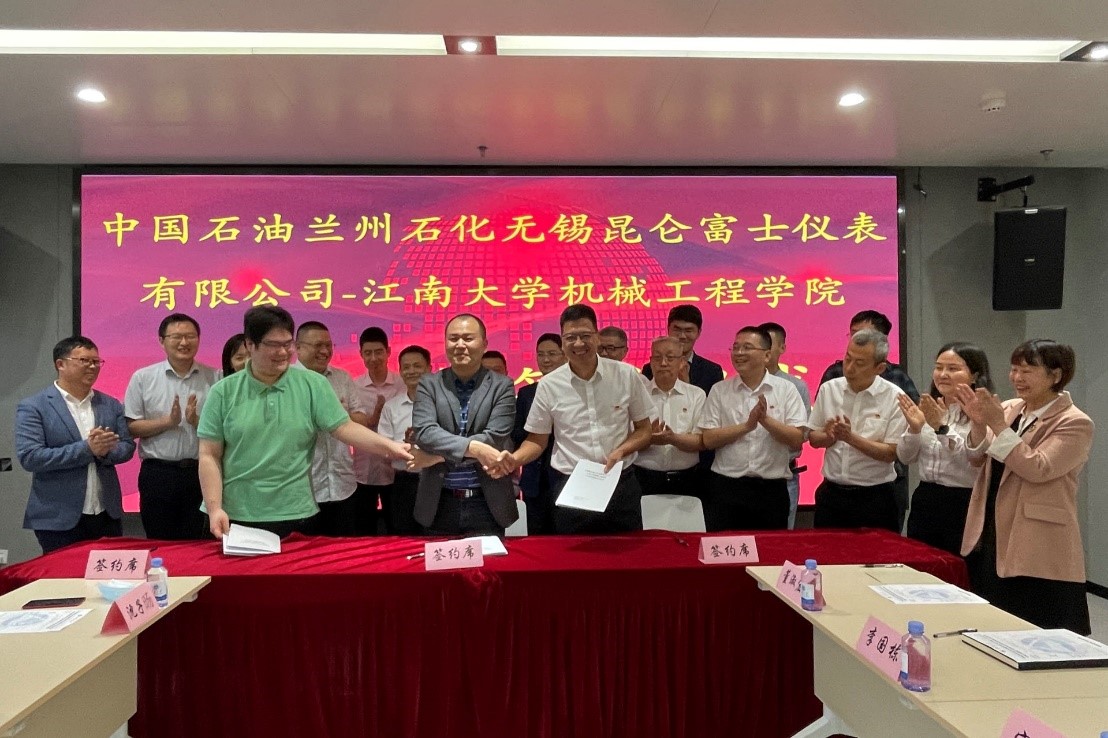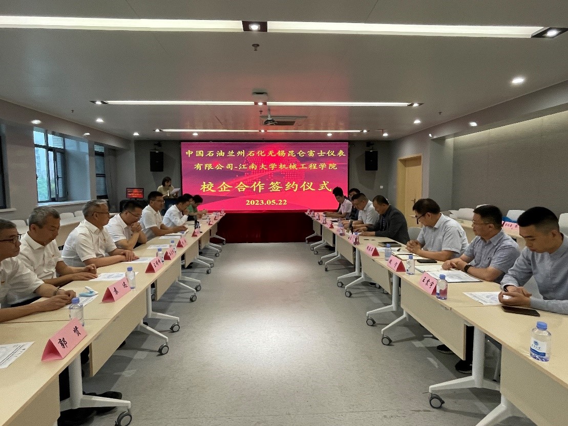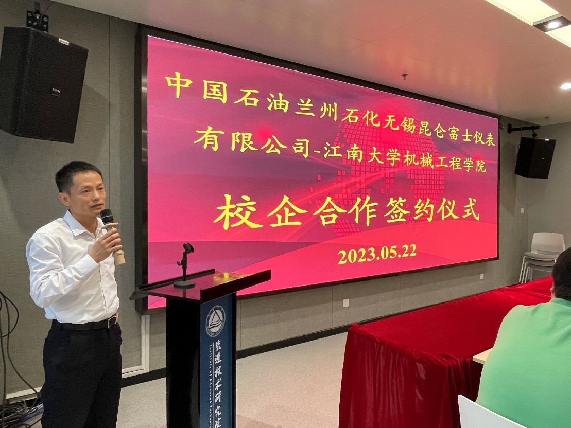 5月22日下午,william威廉亚洲官方与中国石油兰州石化无锡昆仑富士仪表有限公司产学研战略合作签约仪式在先进技术研究院A302会议室举行。无锡市高新区科技局副局长李振东,中国石油兰州石化无锡昆仑富士仪表有限公司党总支书记、总经理杨德寿,william威廉亚洲官方经理赵军华,william威廉亚洲官方、先进技术研究院领导及相关教师出席签约仪式。签约仪式由先进技术研究院副经理李丁主持。