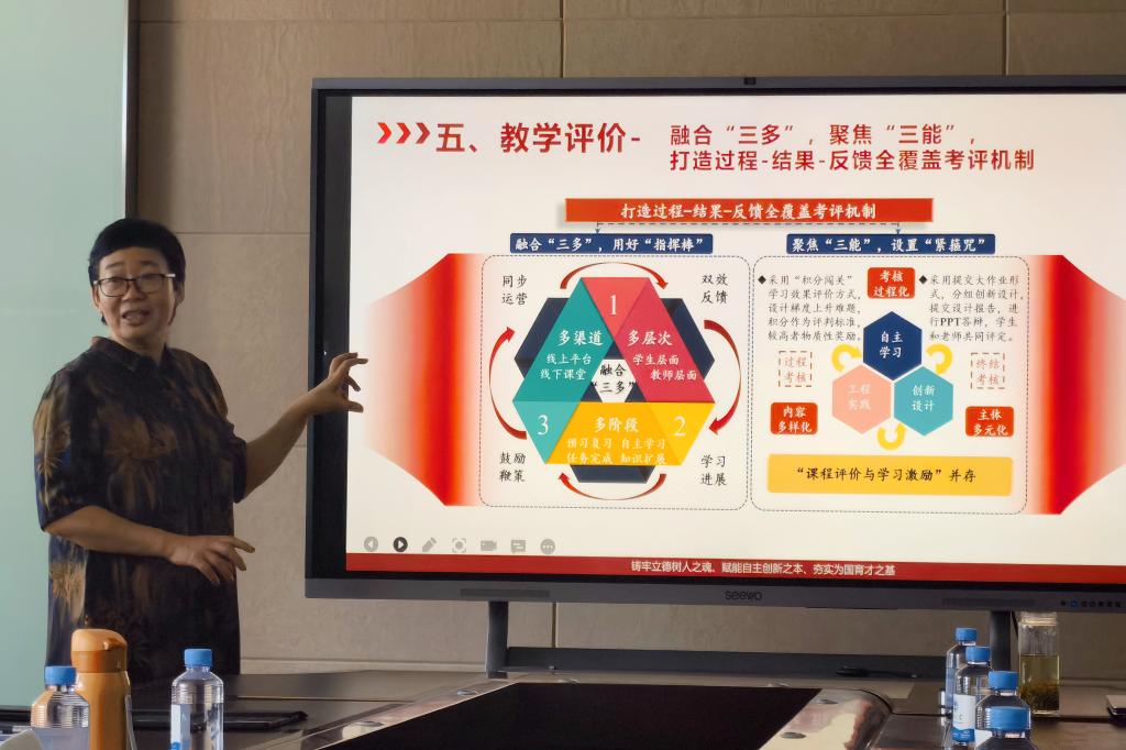 首先,武美萍以《产品创新设计与实践》课程为例,从课程思政内涵、学情分析及教学痛点、教学内容与方法、教学评价、课程思政建设成效等方面分享课程思政建设过程中创新与经验。张秋菊回顾了公司精品课程建设过程并以机器人专业《新生研讨课》为例,从课程概述、教学目标、课程思政设计与实施、课程思政创新与特色等方面与大家分享课程思政教学经验。