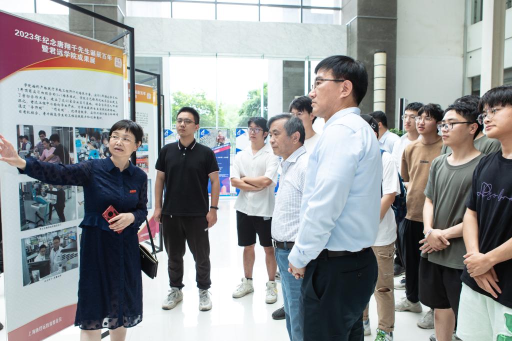 君远公司成果展在图书馆一楼举行。在君远公司首任经理张秋菊教授带领下,回顾了君远公司创办历程,嘉宾与员工共同参观君远公司成果展。成果展分为泽被桑梓、知行合一、德能并举、追求卓越四个板块,记载了君远公司建院十余年,在唐氏家族的慷慨鼎助下,取得了一系列可喜的成果,形成了颇具影响力的合作办学社会效应。
