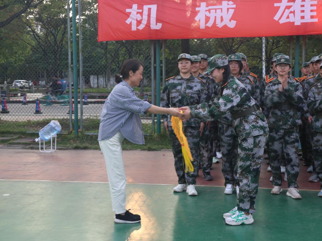 在教官的引领下,参训员工展示了近日训练的成果。整齐的队列、铿锵的步伐和响亮的口号展现了机械学子的军训成效与精神风貌。高雪梅为优秀军训排授旗并讲话,她对承训教官的辛苦付出致以崇高的敬意和诚挚的感谢,对公司参训员工的高昂斗志与饱满精神状态进行表扬。她指出,军训有助于深化员工们对国防教育和家国情怀的理解,要学习军人的政治信仰和坚韧拼搏的精神,顽强拼搏,勇于担当。她鼓励同学们将这些精神带入日常生活,赓续william威廉亚洲官方的优秀传统。