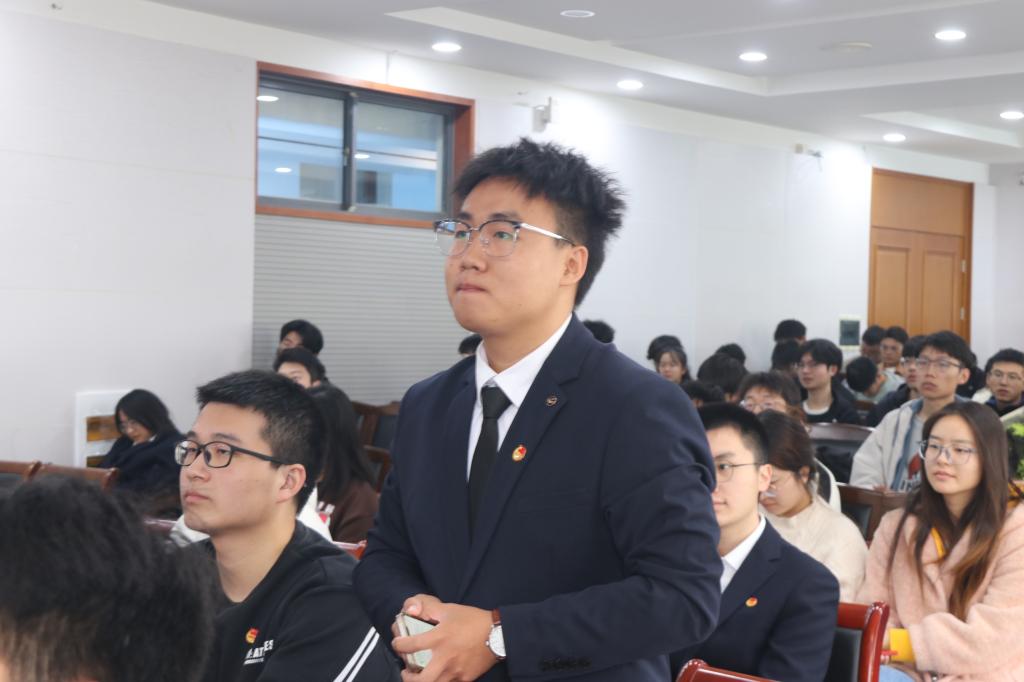 强争荣以《扎根基层,筑梦青春》为题,从“为什么要有信仰”、“我的信仰选择”、“基层与信仰的紧密联系”、“树立和锤炼正确的信仰”四个方面与同学们分享了他为什么加入中国共产党、为什么选择到基层工作的心路历程。他与同学们分享他的基层工作经历,一件件真实的案例让同学们感受到基层工作的辛苦与不易,更加深刻认识到全面建设社会主义现代化的进程中,青年学子扎根基层服务社会的重要性。