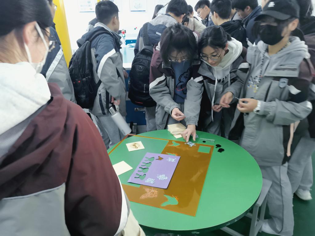 接着同学们分别对工业机器人实验室、特种加工实验室以及3D打印实验室进行了参观,期间展现出了高度热情与浓厚的兴趣。在工业机器人实验室左文娟老师详细介绍了工业生产中常见的机器人及其工作原理,通过视频展示了工业机器人在实际生产中运行过程。在工程训练中心的特种加工实验室,同学们在吕凤艳老师的讲解下,了解了特种加工—激光加工的加工原理和加工过程,刘书明老师向同学们介绍了3D打印技术的类型及对应的加工原理和加工过程,并现场演示了3D打印加工过程,通过理论和实践相结合的方式让员工深刻了解3D打印并激发他们的科学兴趣,利用激光加工技术现场制作的纪念品深受同学们的喜爱。