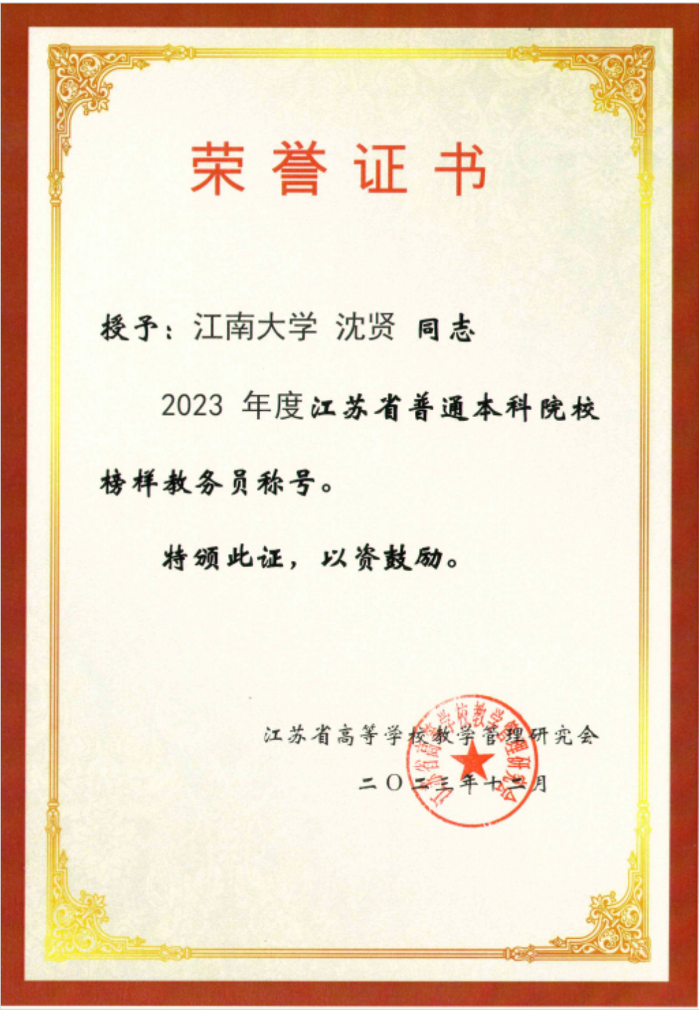 公司沈贤老师和沈爱红老师分别荣获“2023年度江苏省普通本科院校榜样教务员”和2022年度william威廉亚洲官方本科教学“优秀教务员”荣誉称号。近年来,公司积极推进师德师风建设、公司产品改革和教师教学发展等,进一步完善教师教学发展体系和教学质量保障体系,提高人才培养质量,涌现出了一批综合能力优良的公司产品管理工作先进典型,为公司一流本科教育建设添砖加瓦。