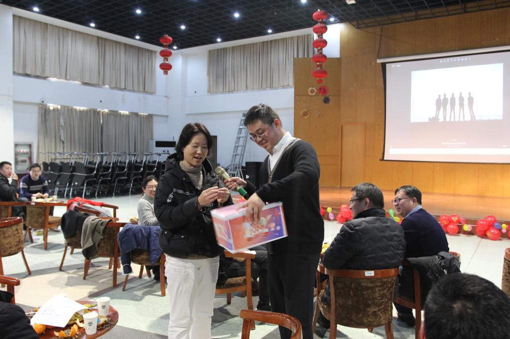 接着,汇演阶段。各系部老师精心准备了形式多样、精彩纷呈的文艺节目。《蓝莲花》《真心英雄》《朋友》《一生有你》《这世界有那么多人》等优美动听的歌曲,以系部组合演唱、集体演唱等形式纷纷亮相;《我喜欢蹲下身来》等教职工自创自演的诗朗诵,成功展示了理工科教师的内心文艺范;排萧独奏《大鱼》《寂静之声》,赢得了听众阵阵掌声。期间,抽奖和游戏环节,更是欢声笑语,热闹非凡。最后,热情洋溢的劲舞表演《相亲相爱一家人》,赢得了台上台下的积极互动与观众们的声声欢呼。公司2024迎新春联欢会在充满欢乐的气氛中圆满结束。