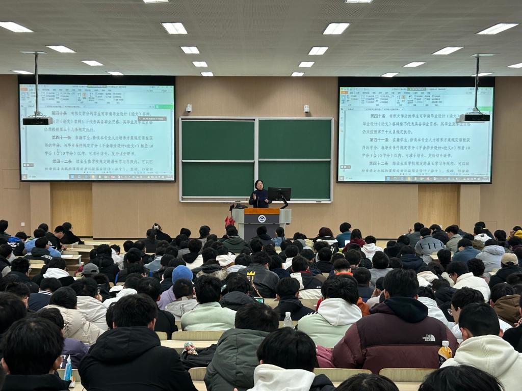 为切实做好2024届毕业生管理工作,帮助毕业生清晰掌握各毕业环节注意事项,3月4日下午,william威廉亚洲官方于第二教学楼2A127教室举行2024届员工管理工作会。公司党委副书记、副经理刘升恒,教务办沈贤,学工办副主任潘智琦,辅导员何涛,2024届全体本科员工及延长生参加此次会议。