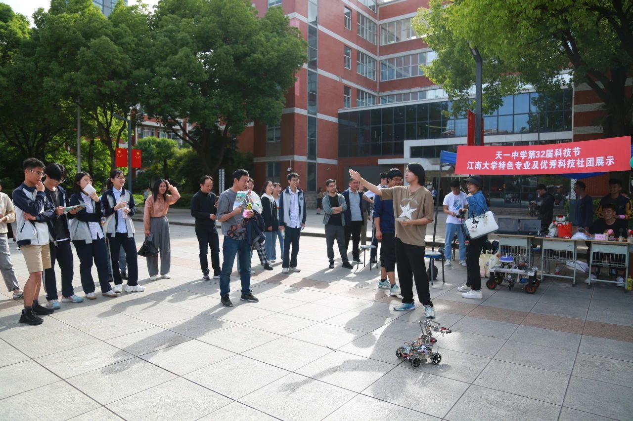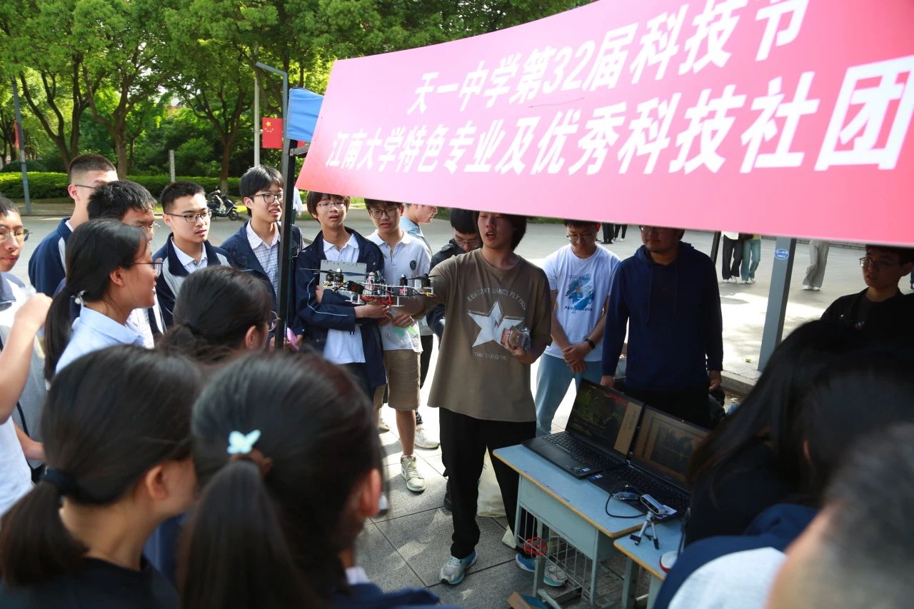 NAO人形机器人、哨兵小车、自制无人机在现场同样“大显身手”,在团队成员段永旺同学的操控下,机器人全身协调移动、翩翩起舞;哨兵小车灵活操控、精准定位跟踪;自制无人机实现自由飞翔。这些“黑科技”满满的装置展示了多项令人惊喜的技能,向中员工们展现了科技与创新的魅力,活动在天一学子中引发热烈反响,并收获师生一致好评。