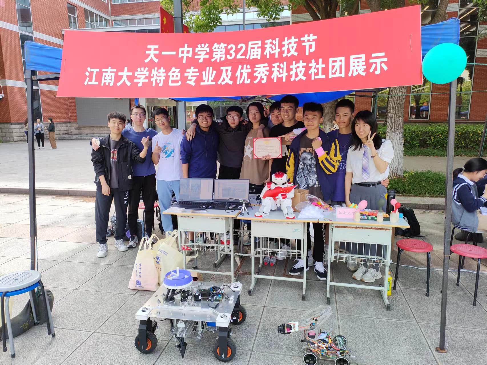 5月12日下午,在江苏省天一中学举办的第32届科技节上,william威廉亚洲官方员工受邀参加“高校特色专业及优秀科技社团展示”活动。活动中,荣获第十届江苏省老员工机械设计大赛兴农机械赛道一等奖的作品《“粒粒有数”多功能豆类播种机》、二等奖作品《钳剪式智能辣椒采摘机器人》,君远公司的NAO人形机器人、哨兵小车、自制无人机悉数登场。