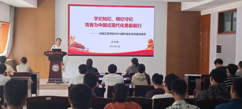 高雪梅以《学纪知纪、明纪守纪,青春为中国式现代化勇毅前行》为题为毕业生党员带来党纪学习教育主题党课,系统解读了《中国共产党纪律处分条例》修订的背景和主要内容,并就《中国共产党章程》《关于新形势下党内政治生活的若干准则》等党内纪律规定中与员工党员密切相关的内容作重点讲解,以鲜活案例生动讲述了我们党推进全面从严治党的重要意义和现实举措,引导毕业生党员“知敬畏、存戒惧、守底线”。她寄语毕业生党员坚定理想信念、锤炼优良作风、增强能力本领、秉持敬畏之心,争做有理想、有信念、肯吃苦、能担当的新时代青年。