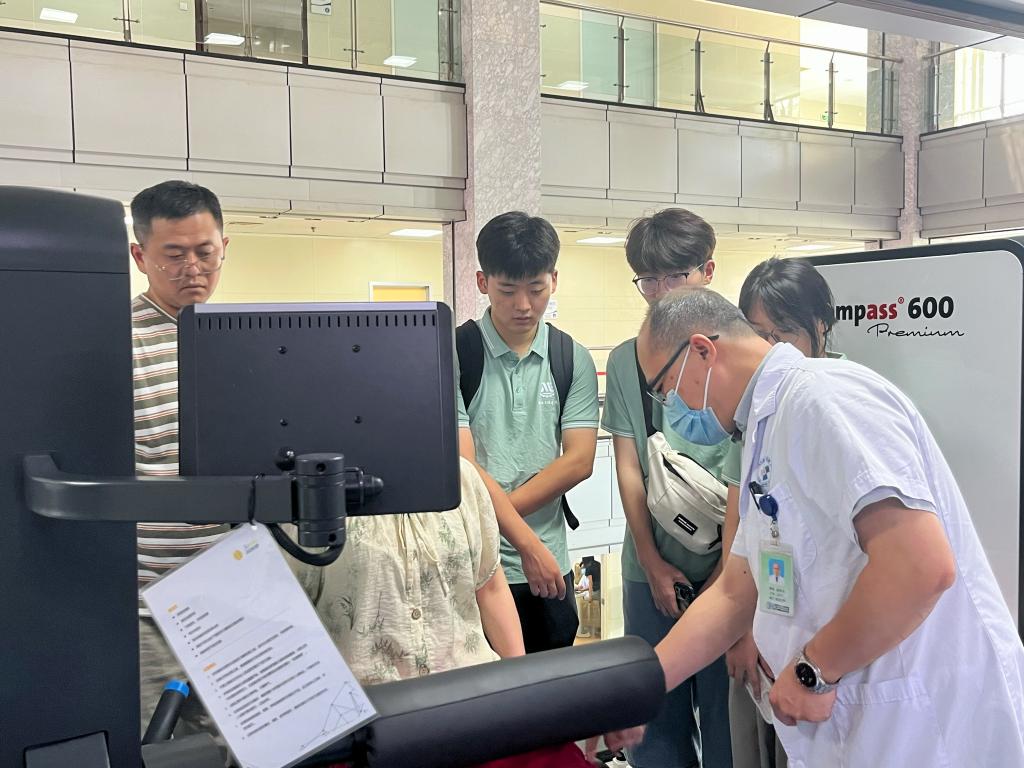 在随后的技术交流中,陆主任首先为实践团成员用简略且形象的方式介绍了上肢运动的原理—“肌肉、筋、神经”三者是如何协同运动,及康复治疗过程中各阶段患者的不同治疗方向,提出机器精密度和自主化提升的需求。接着徐主任提到:“目前康复治疗中与同学们带来的项目相似的上肢康复仪器需要专业从医人员协助操作,自主性较差,需要耗费的人力较大,机械公司学子肩负重任,希望日后能研发出能更好帮助患者康复、减轻医生重担的仪器并投入实际使用。”