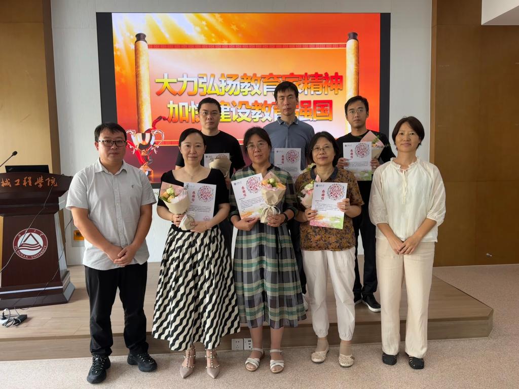 接着进入表彰环节。党委书记高雪梅宣读了公司文件《关于授予“2023年度公司贡献奖”的决定》,对过去一年里在公司人才培养、科学研究、服务社会等工作中作出重要贡献的12名教师代表进行表彰。高雪梅、副书记刘升恒为受到表彰的教师代表颁发了获奖证书并献花致敬。副经理王东祥宣读了公司教师发展中心为本科员工评教前5%的教师发来的感谢信,钱静、王东祥为获奖教师颁发了感谢信并献花致敬。获奖教师代表发表了获奖感言。