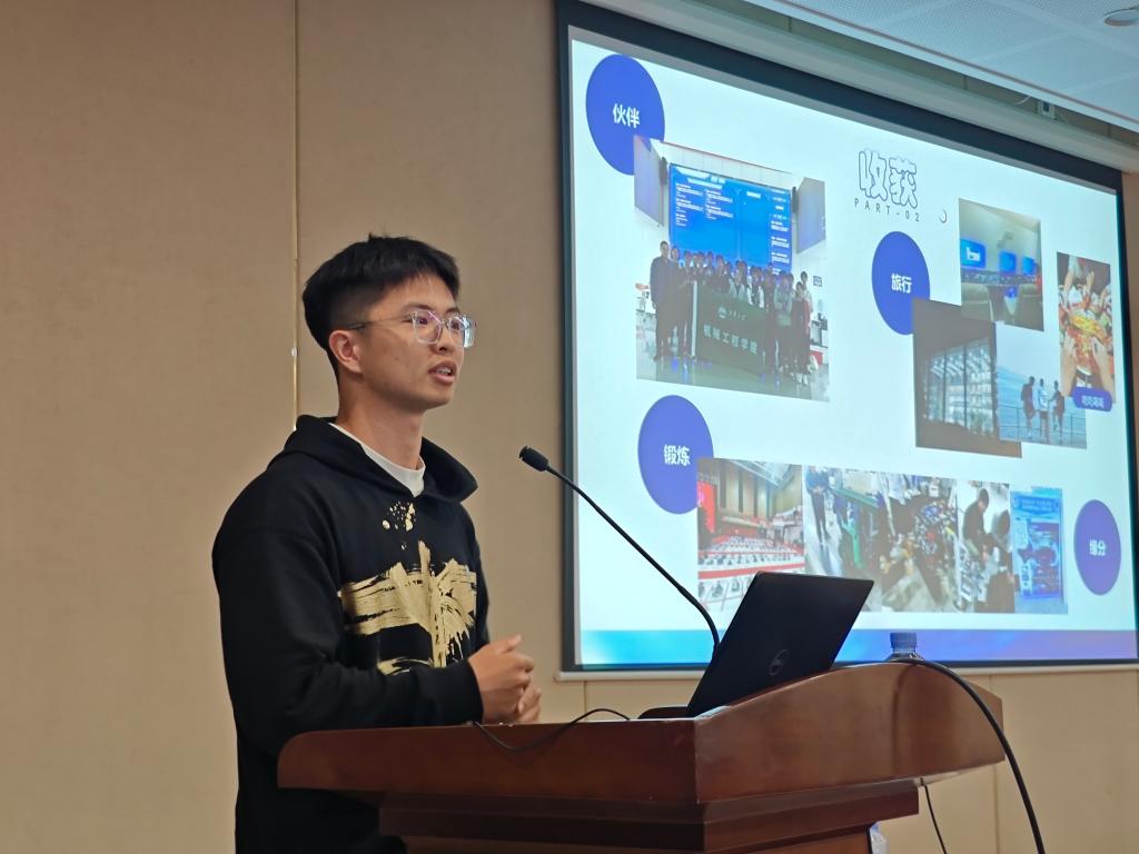 卞达以“工科生的进阶之路”为题介绍了公司以高水平学科竞赛为依托的创新教育培育体系。2021级机械工程专业本科生王永康作为优秀员工代表结合大学期间的竞赛经历与同学分享了参与学科竞赛的收获与成长,他鼓励同学们团结协作、笃志前行、勇于面对挑战,感受科学世界的无限魅力。