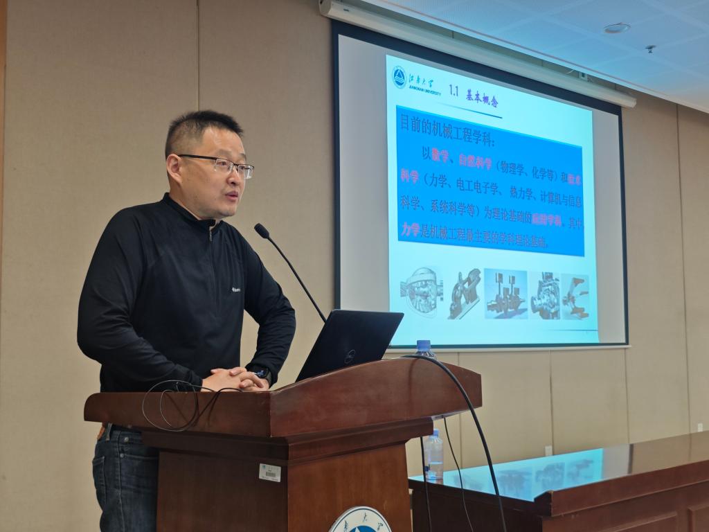 钱善华以“什么是机械工程?”这一问题开场并邀请了现场同学描述自己对机械工程的理解,引导同学们思考自己的专业选择、发展规划与努力方向。随后,他向同学们详细介绍了公司机械工程专业的发展沿革、学科平台、团队力量以及培养方案等内容,提升新生对机械工程专业的认同感。