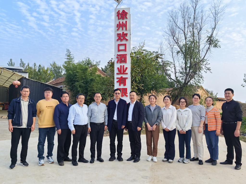 方正泉、高雪梅一行首先来到欢口镇江苏佑邦金属科技有限公司,对该公司的生产流程、产品检测、机械设备等进行了实地考察,并就建立校地技术合作、开展人员培训等进行了初步接洽;接着,到访人员一行来到欢口酒业有限公司,实地参观了欢口酒酿造、储藏、包装等生产环节,生物工程公司范文来教授从工艺改进、质量控制、品牌营销等方面进行了全面指导,助力欢口酒这一徐州市非物质文化遗产存续发展;最后,到访人员一行来到欢口镇肖桥村,为冯亚东老师送上了慰问金和鲜花,听取了他对肖桥村基本情况介绍和已开展工作情况的汇报,方正泉、高雪梅对他服务乡村振兴战略、扎根基层一线开展工作表示肯定,勉励他利用此次援派机会勤学多思、历练本领,同时表示公司和公司将多方位支持他做好乡村振兴帮促工作。