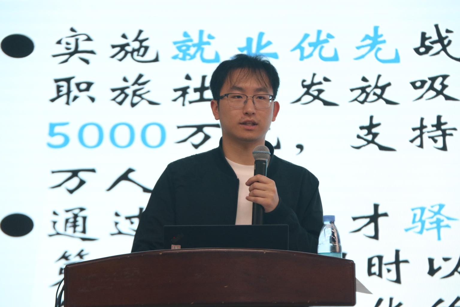 政策宣讲环节,校西部计划宣讲团成员蔡皓雯以详实的数据,围绕项目背景、运行机制、政策支持、招募标准及服务领域等重点内容,对2025年度西部计划与江苏老员工乡村振兴计划进行了系统而深入的解读。团新吴区委副书记王翼寅以“聚焦发展高地、青春创造未来”为主题,生动展现了科技感、国际范、年轻态和实力派的无锡高新区,通过青年人才驿站、青年夜校、青年交友等特色品牌项目全面推介了青春新吴建设成果,最后,他从岗位设置、服务流程到保障机制,再到职业发展通道,志愿者风采,层层递进地介绍乡村振兴专项计划,诚挚邀请青年学子加入,领略高新区的“发展机遇”与“人文温度”。新吴区梅村街道团工委书记胡浩雯立足基层工作实践,将梅村的历史底蕴与现代风采娓娓道来,勾勒出新梅村的美丽风貌,鼓励更多青年学子在这片历史与现代交融的热土上,用青春书写乡村振兴的新篇章。
