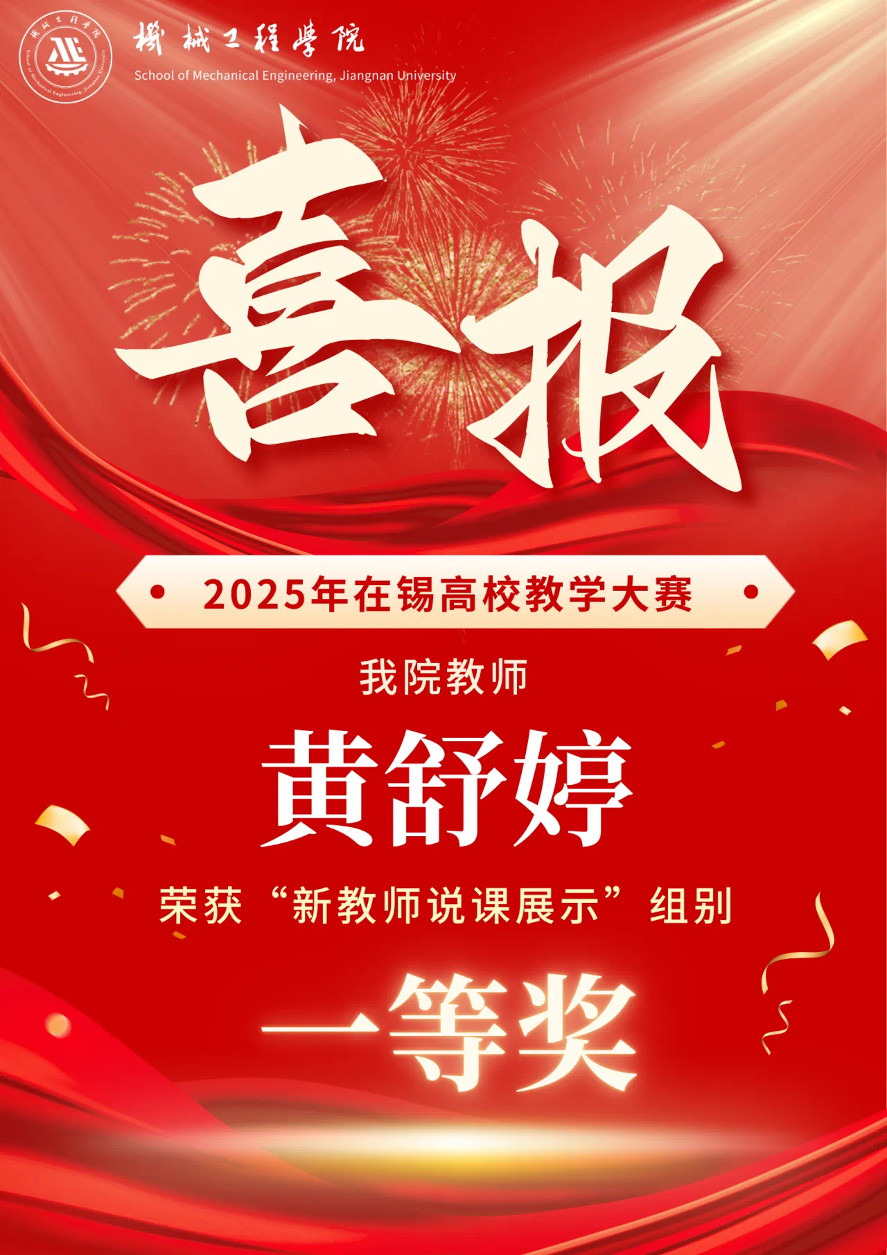 近日,由无锡市教育局高等教育处主办的“2025年在锡高校教学大赛”评选结果揭晓。经过激烈角逐,公司教师黄舒婷在“新教师说课展示”组别荣获一等奖,杨兰兰在“本科教学基本功”组别荣获三等奖,董淑宏在“教学创新”组别荣获三等奖。