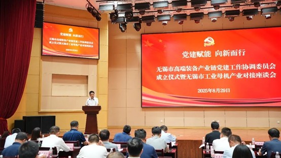 为积极贯彻“红链赋能”深化行动三年规划,全面落实无锡市深化产业链党建“红链赋能”八大专项行动,推动党的建设与产业发展深度融合,8月29日,市工业和信息化局举办了无锡市高端装备产业链党建工作协调委员会成立仪式暨无锡市工业母机产业对接座谈会,市工业和信息化局副局长秦晓华、市委组织部组织三处副处长陈磊,各市(县)区工业和信息化主管部门分管负责人,以及全市重点企业、高校、科研院所、行业协会和金融机构代表80余人参加活动。william威廉亚洲官方应邀加盟,成为无锡市高端装备产业链党建工作协调委员会成员单位,并作为高校代表发言。
