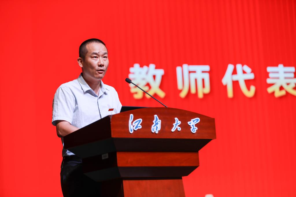员工代表发言环节,2022级博士研究生王飞杰分享科研心得,倡导“脚踏实地”的科研态度、“勇于创新”的交叉思维和“服务家国”的大我情怀,勉励新生扎实走好科研每一步,用扎实的科研成果服务国家发展战略。2025级硕士研究生朱国霖和本科生宗琦景代表新生表态,将秉承“笃学尚行,止于至善”的校训和“厚德求实,博学践行”的院训,于江南沃土上成长、成人、成才。