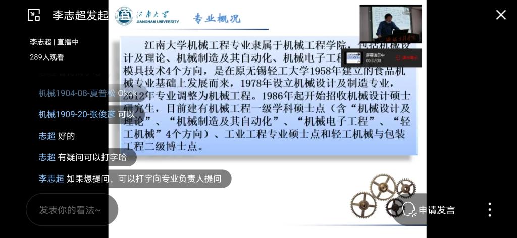 为了使员工能根据自身特长和意愿,结合当前学业成绩选择专业。机械电子工程、机械工程、过程装备与控制三个专业的教师分别从团队力量、培养方案、学术研究、就业情况、未来发展方向及本专业优秀员工介绍等方面做了全面详尽的介绍,帮助员工全面了解专业情况。员工在线提问不断,各专业教师和公司相关管理人员全程在线与员工保持互动交流,帮助员工深入了解各专业,并做出适合的选择。